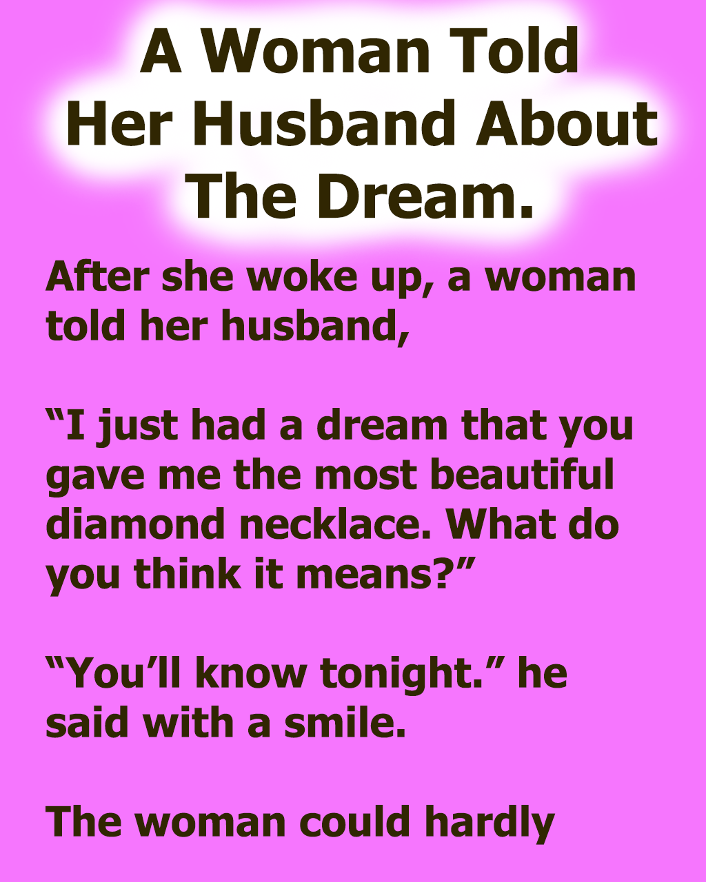 The woman could hardly think of anything else all day and she couldn’t wait for her husband to return home.